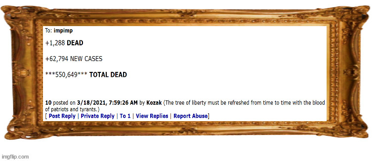 Today is the one year anniversary of “It’s just the flu, bro”. Let’s summarize all of the important ways that we were right over the past year: 1.the Coronavirus is approximately the same in terms, of lethality, as the flu. 2.the government shouldn’t strip away liberties in order to make people be/feel safe from germs 3.kids aren’t affected by coronavirus (don’t discuss extremely rare exceptions as that would be stupid) 4.vitamin D and zinc will boost your immune system and provide some level of protection against coronavirus, or any virus 5.each person is responsible for their own immune system - it is not a government function 6.mask wearing did very little to help anybody 7.the CDC is full of crap 8.Fauci is full of crap 9.if we aren’t vigilant in opposing this tyranny now there will be long term reductions in our liberty due to medical socialism/tyranny 10.those who profit from Coronavirus do not want this to end (vaccine manufacturers, politicians who like tyranny, contact tracing companies, etc.)
