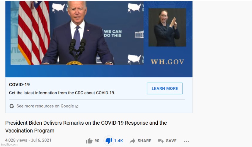 I never cancelled my YouTube subscription to The White House, so the first thing I do when I get up every morning is, mute my laptop, then click on each new video from Biden’s White House potato patch, and down vote each and every one of them.