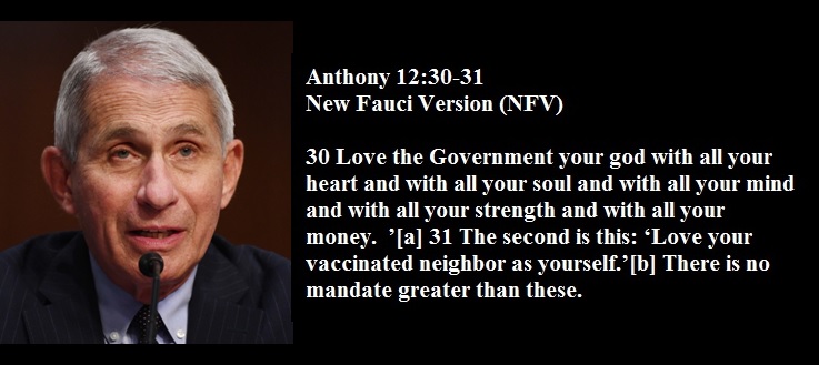 In the Faux “gospel” one “loves ONLY one’s vaccinated neighbor as one oneself”.