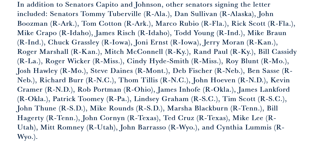 3) ...John Barrasso (R-WY), Mike Rounds (R-SD) and Roy Blunt (R-MO).