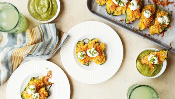 Spoon the corn mixture into the jalapeno halves and place on the prepared baking sheet. Top each jalapeno with the panko and cheese topping. Bake for 18-20 minutes until jalapeno is softened and topping is golden.
