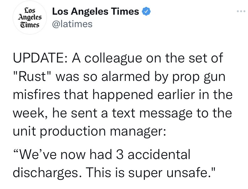 So sounds like the blanks stuff was a ruse. I bet Alec shot her in cold blood on purpose.