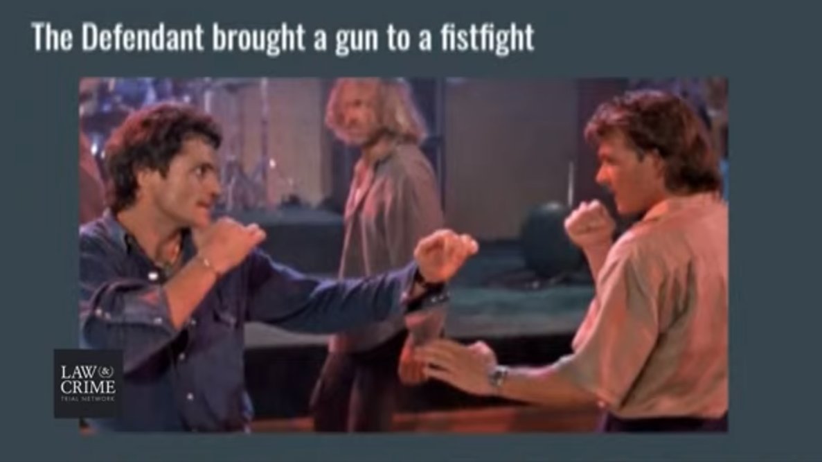 Binger just introduced a scene from Roadhouse as part of his argument why Kyle Rittenhouse is guilty
