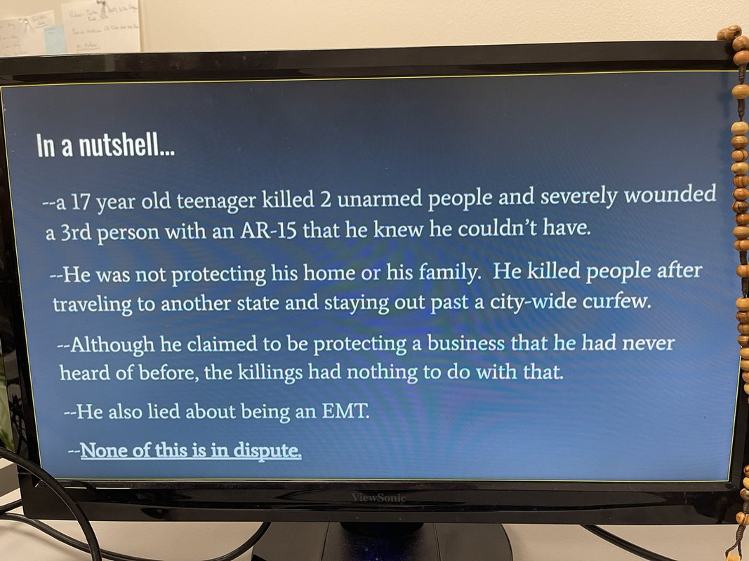 Rittenhouse prosecution lies on the first slide of his closing argument