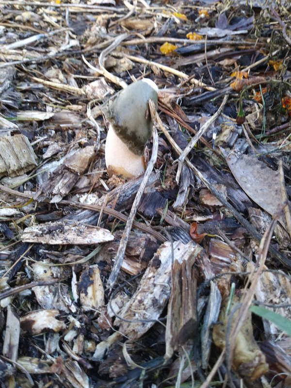 Meanwhile, I went down a bit of a 'rabbit hole' this week. My SIL had come over last Sunday to watch the compost pile being filled & as she was walking across the garden to head back home, she said “oh look – you have 'Dead Man's Fingers'” (the 'polite' name). I had noticed one growing when I was clearing out the zinnias several weeks ago, but a bunch more have come up, growing in the wood shavings. They are just around that one zinnia bed, too.