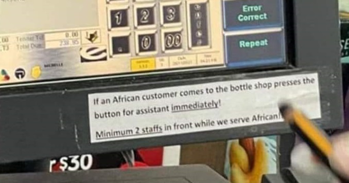 Fury at the Sunshine West supermarket, west of Melbourne, grew after images circulated online showing a racist message taped to the liquor cashier’s desk.