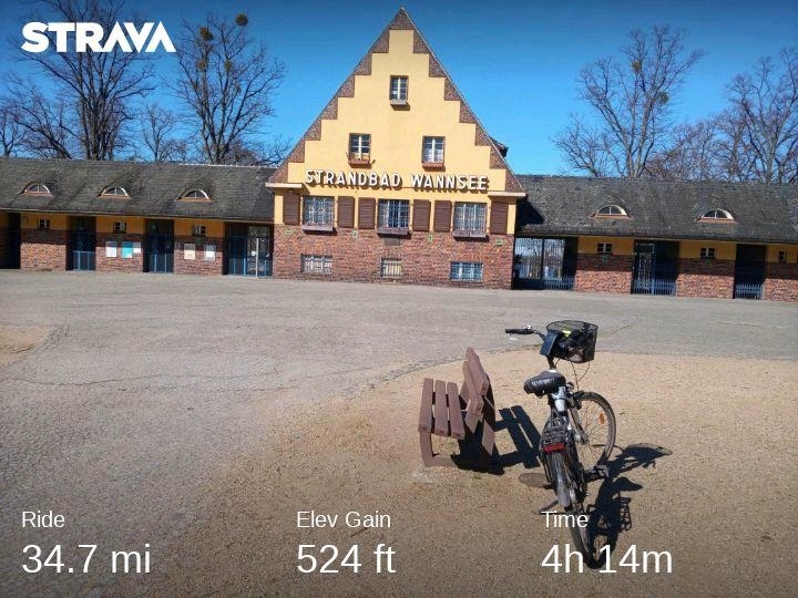 Scouted a ride to the beach at Wannsee. It's not open yet but the beach at Müggelsee is being renovated, although it will still be opened. This ride was great. I came down a wide dirt trail through a forest. The trail was downhill a lot of the time. I was standing on the pedals and allowed the bike to move as fast at it wanted. Was such excellent fun. I am going to do this many many times. This was a very good day!