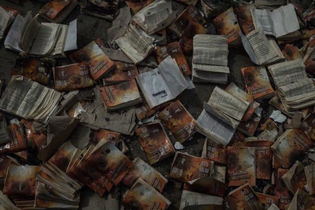 Russian invasion destroyed Bibles in Irpen, Kiev region. Missions organization’s headquarters in Ukraine bombed, Bibles burned Piles of burned Bibles, charred walls and rubble were among the few things remaining of a missions organization’s field ministries headquarters near Kyiv, Ukraine, after it was bombed by Russian military force. Sergey Rakhuba, president of Mission Eurasia, requested prayer as his team continues to work with ministry partners inside and outside of Ukraine distributing food, Bibles and other needed materials to refugees and others impacted by the country’s Russia invasion. “Our hearts are broken and profoundly bleeding,” said Rakhuba. “It is devastating to see our field ministries [headquarters] … completely destroyed.” There are no words! Praying for Ukraine