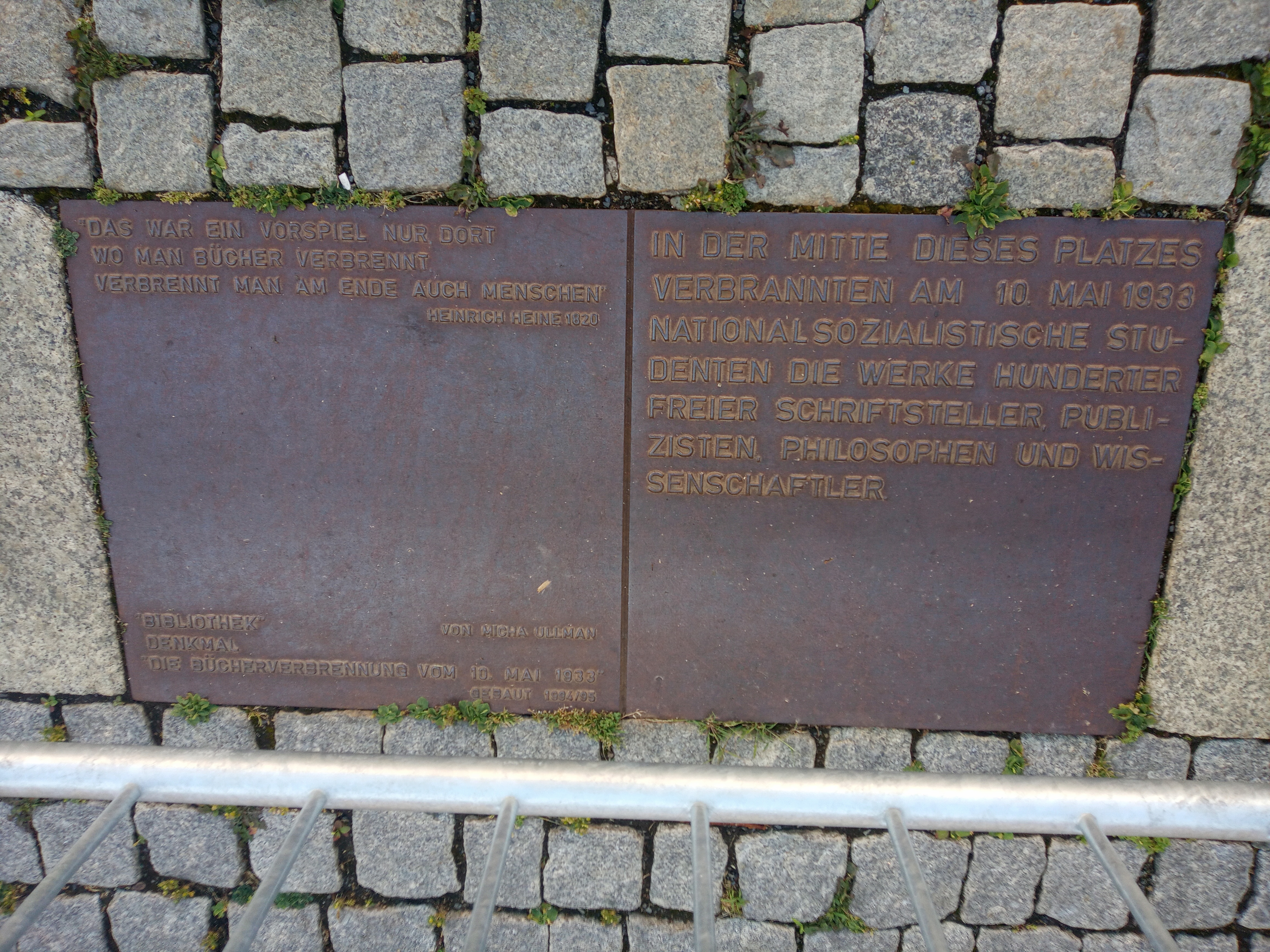 Bebelplatz is where the Nazis were burning books. I noticed I was standing on a plaque that marks it. Which I had never seen before because it is small and a bit off to the side. Quote says: This was a foreshadowing of what happens when books are burned. In the end people will burn.