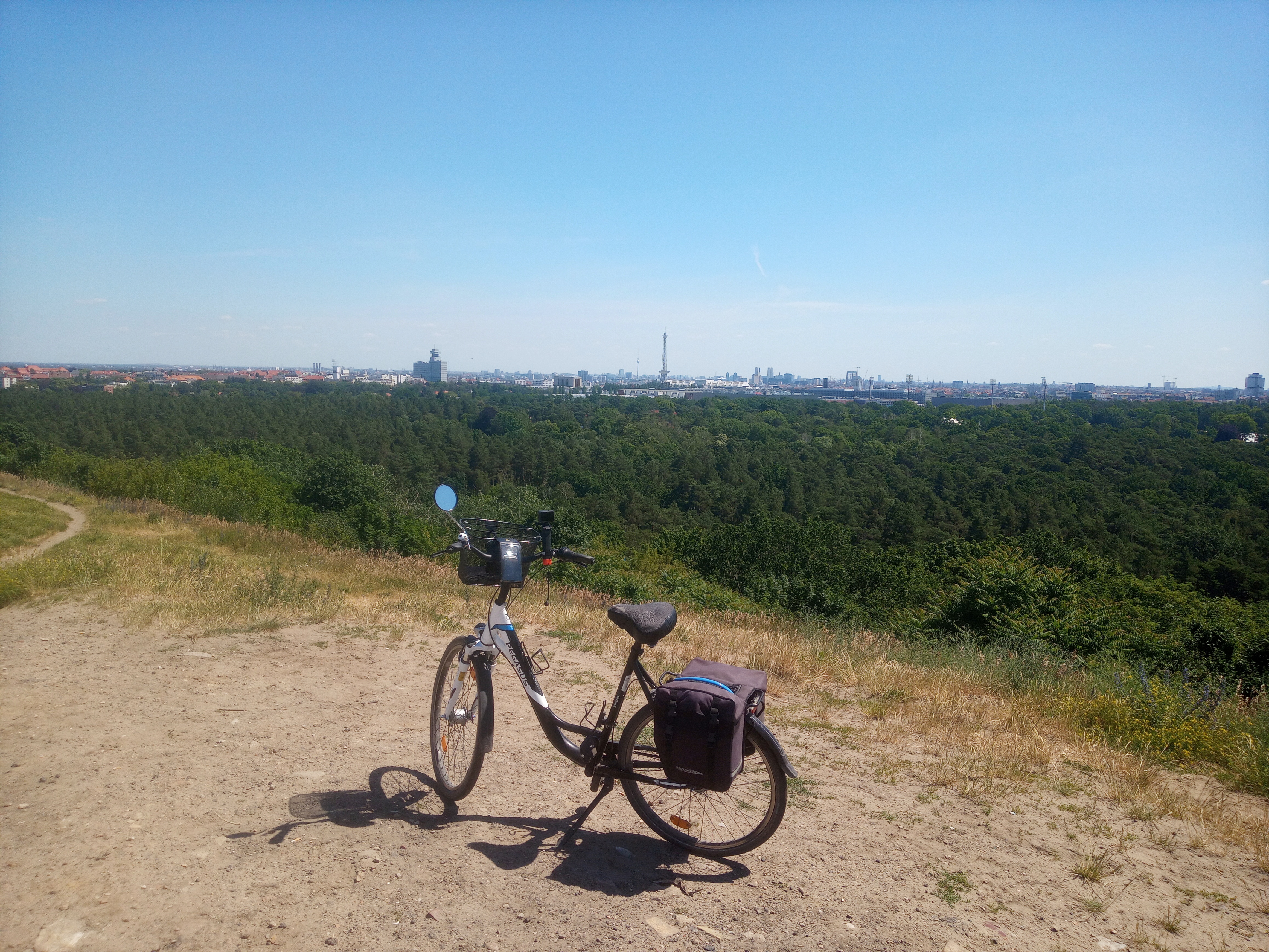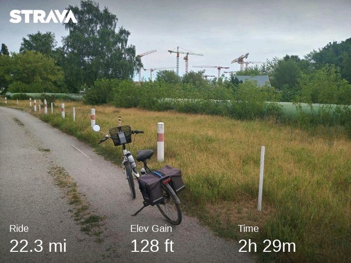 I made a GoPro video of the ride from Drachenberg down through Grunewald (forest) to Strandbad Wannsee. But the video got stuck uploading at 27% over night and now is at 47%. I made another video going home from the beach till the battery ran-out. I don't think that is a good video because I hit many red lights (as if the bicycle odyssey wasn't enough).
