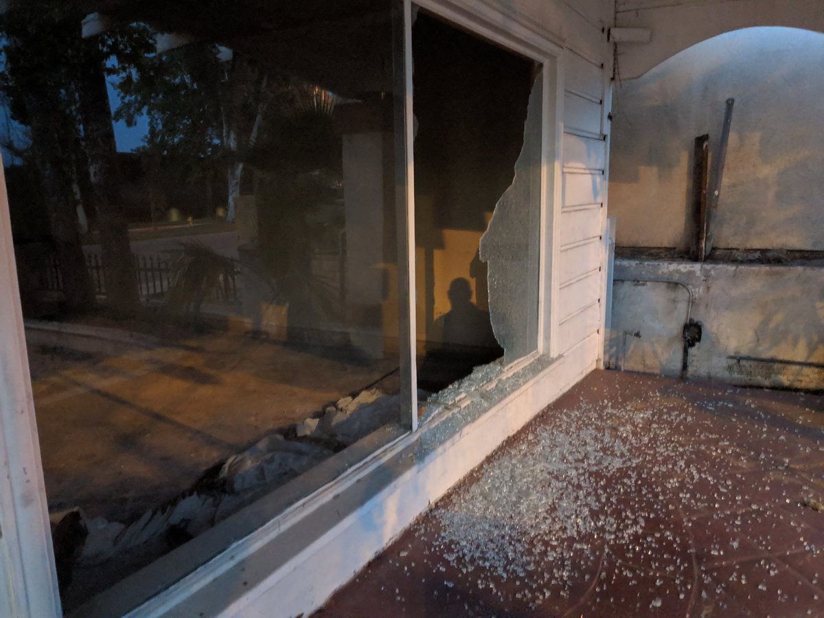 If you were a cop and you did that, I can’t disagree. I will offer: 1) standard window glass is different from door safety glass; 2) CA building code requires tempered glass in doors; 3) tempered glass (also in car windows) will shatter both away from the impact _and_ towards it.