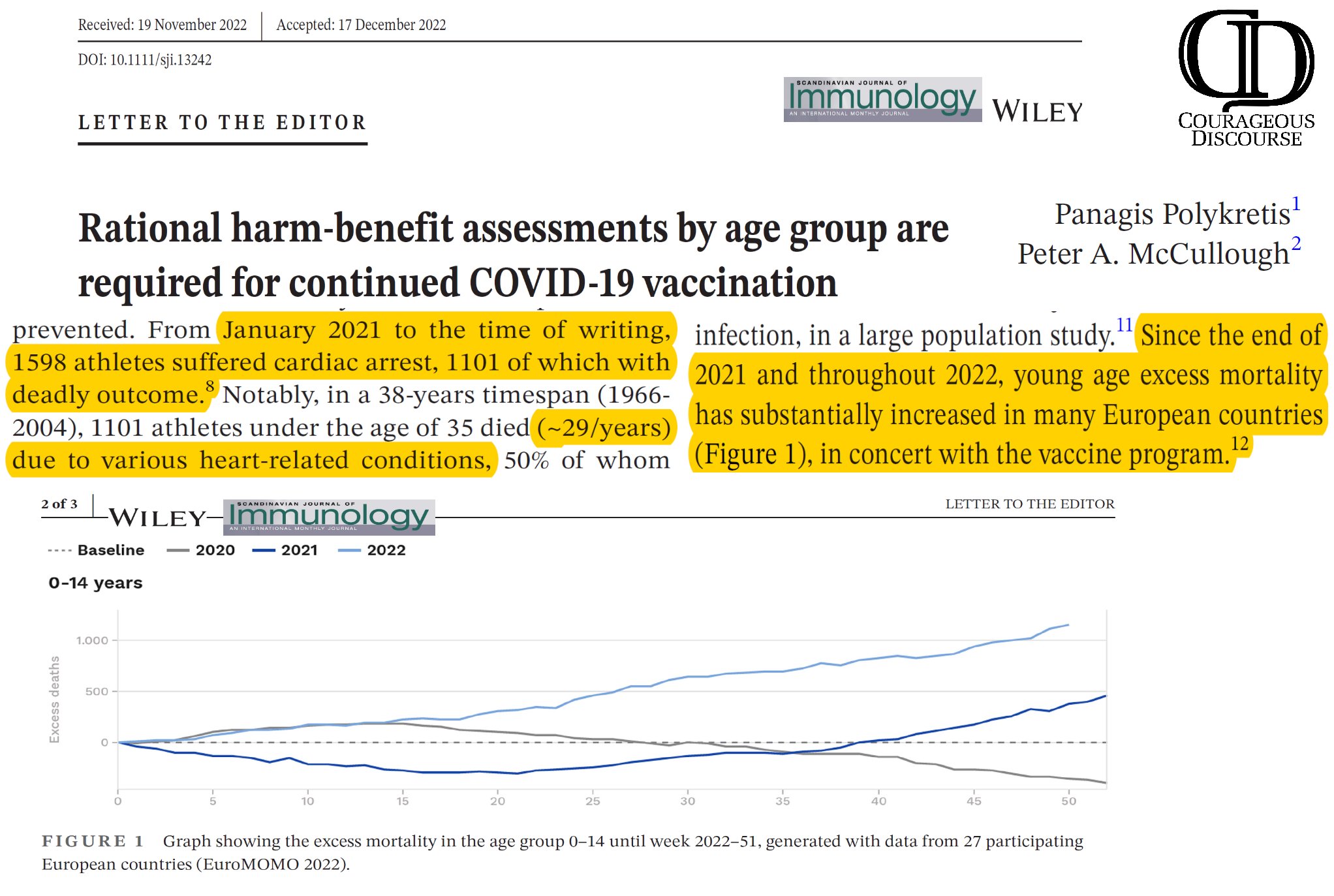 Note that McCullough originally speculated that the injury that Buffalo Bills safety Damar Hamlin was due to commotio cordis (a phenomenon in which a sudden blunt impact to the chest causes sudden death in the absence of cardiac damage). The time delay from the hit until he collapsed is expected in commotio cordis. Peter believes that the ventricular tachycardia and ventricular fibrillation could have been set up by the vaccine if he took it.