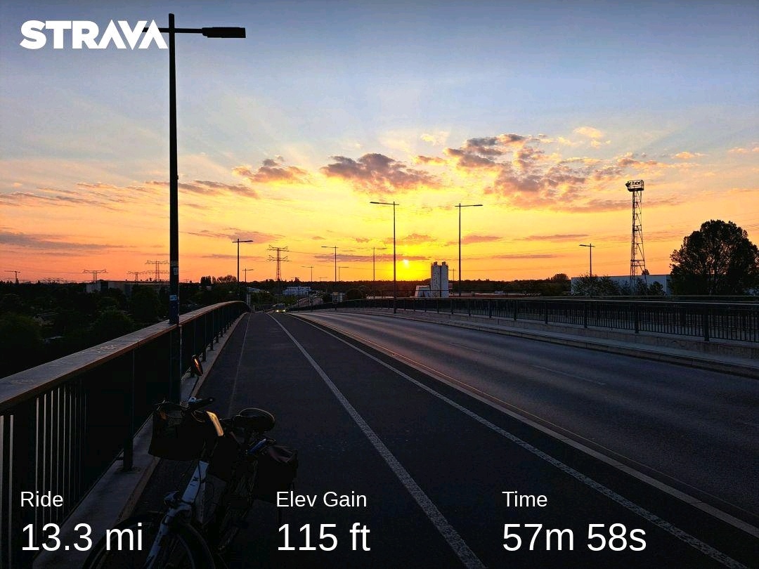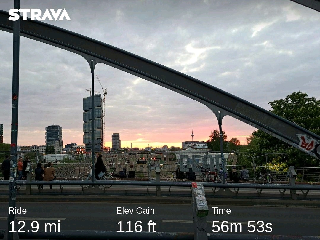 I got there ten minutes too late for a better picture. Ten minutes earlier, when I saw the sky, it was much more wide-spread orange. Then I knew I had to get to Sunset Bridge ASAP, but there was a broken traffic light. If you want to hear me crap on something about Berlin, it's that there are way too many times that traffic lights don't work.