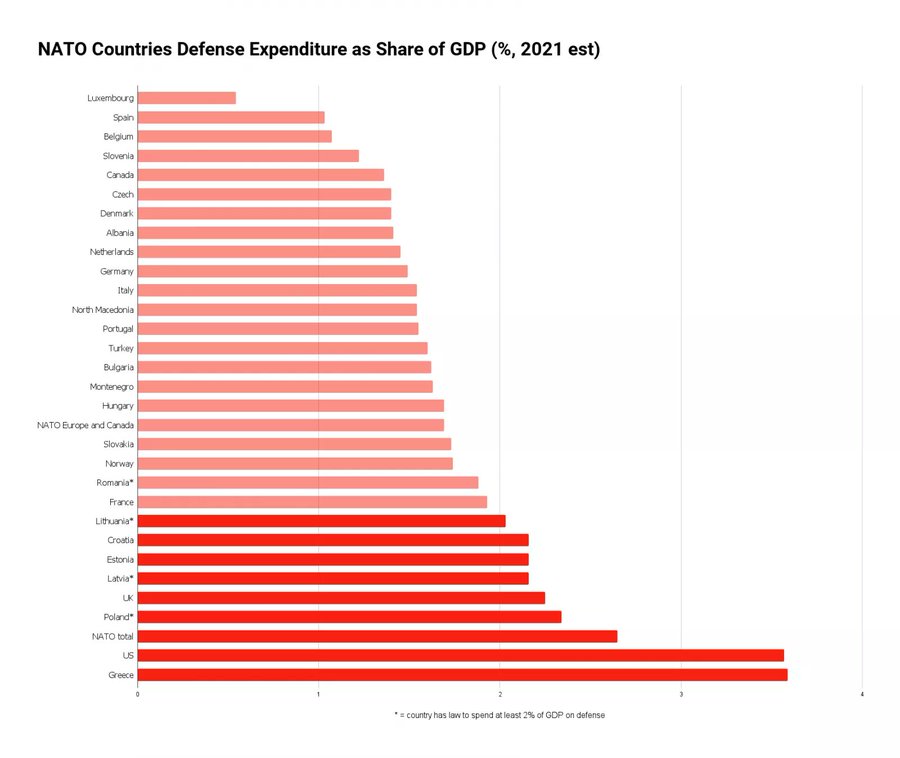 The other countries that met the 2 percent threshold include the United Kingdom, Greece, Croatia, Poland, Estonia, Latvia and Lithuania.