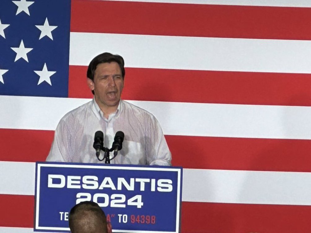 Real pic of @RonDeSantis in Oklahoma today. Apparently his billionaire donors didnât budget for air conditioning or deodorant on the campaign trail.