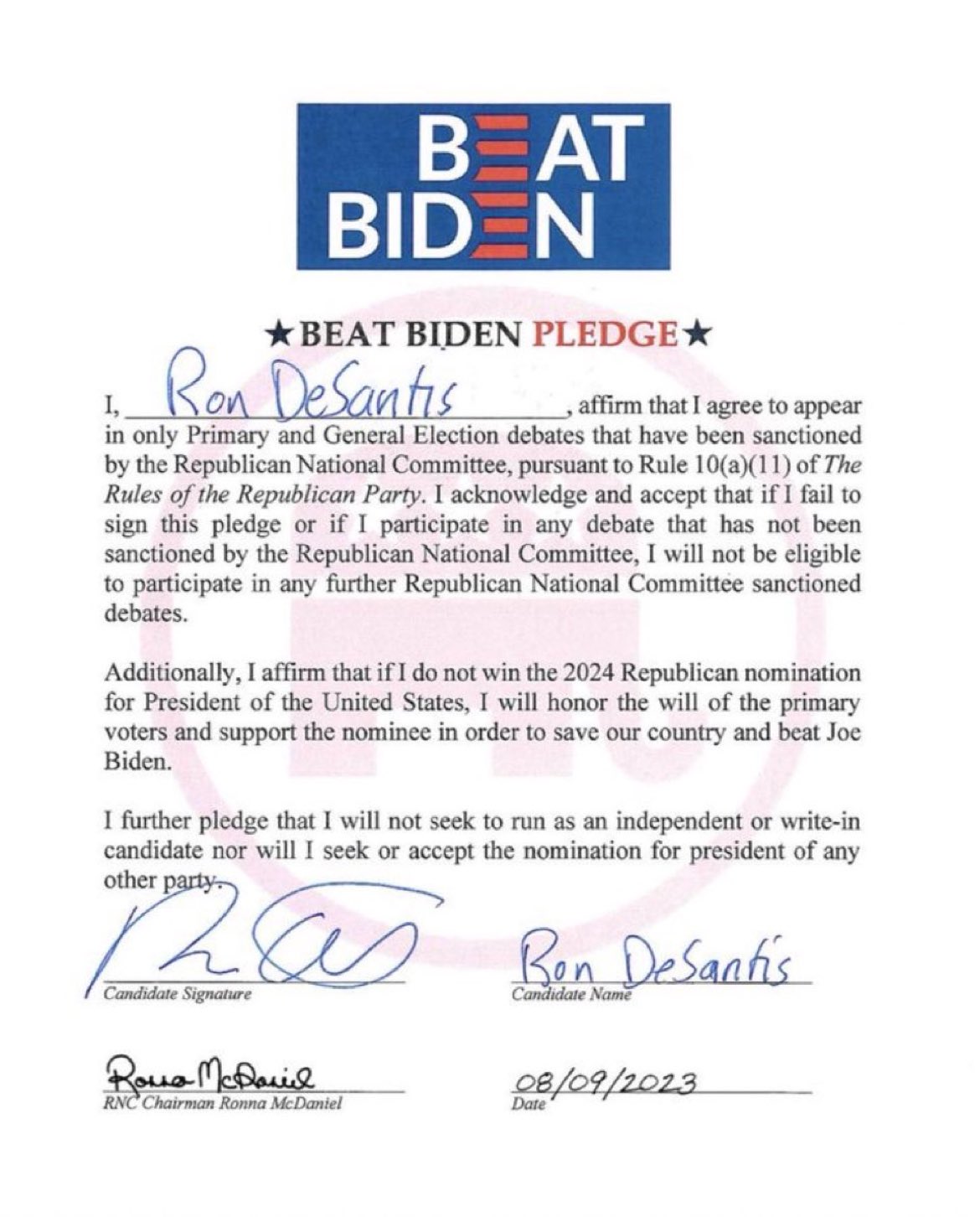 @GovRonDeSantis agrees to endorse Donald Trump for President