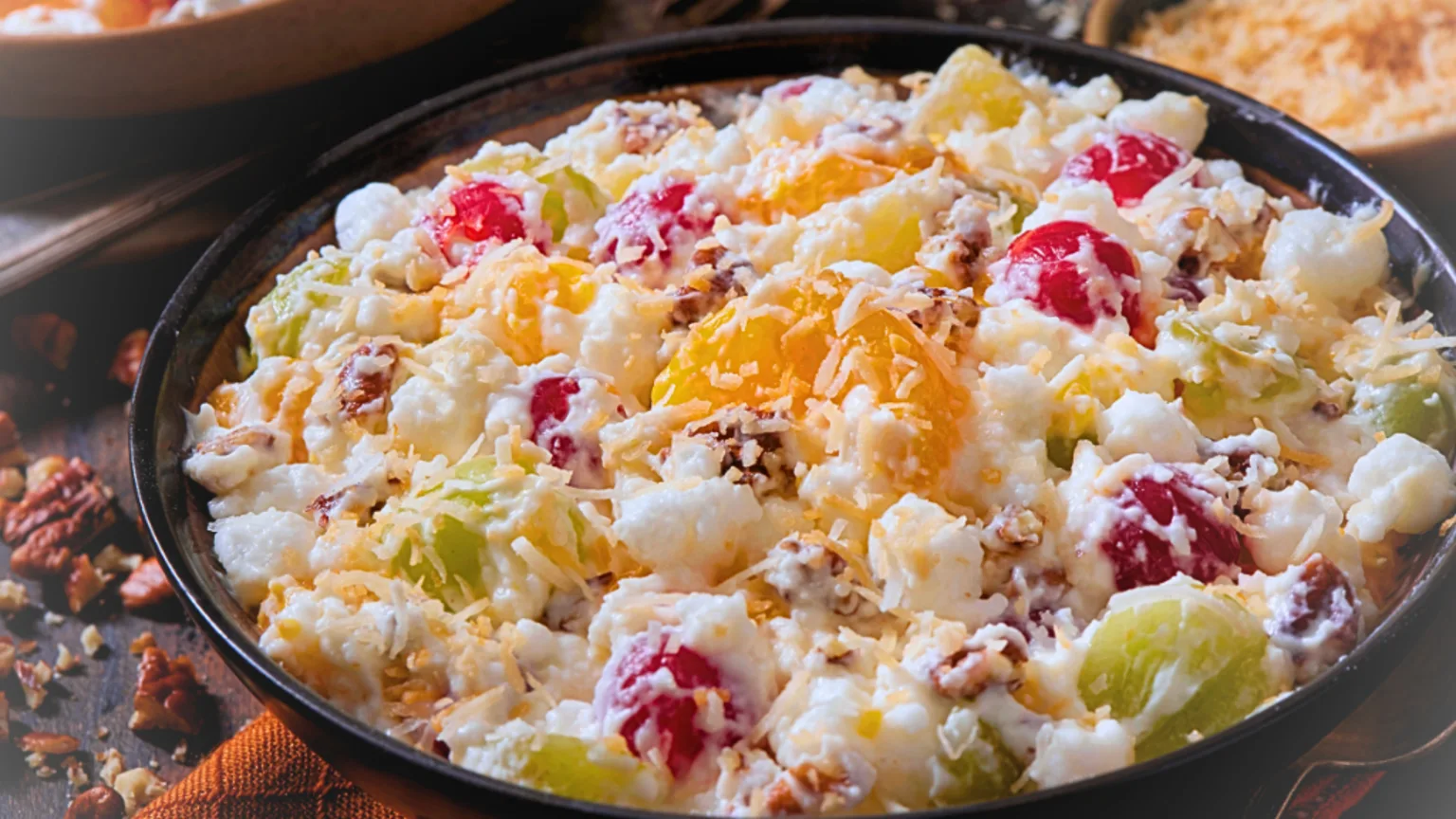 A genuine ambrosia salad is served the same day it is prepared. However, more modern recipes suggest overnight refrigeration of the dish. Other ingredients often added to the salad include pineapple, nuts, cherries, apples, bananas, whipped cream, or yogurt.