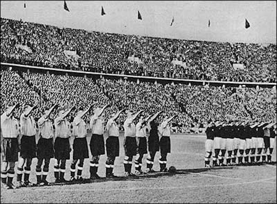 England vs. Germany 1935, note the English players are also giving the Nazi salute.