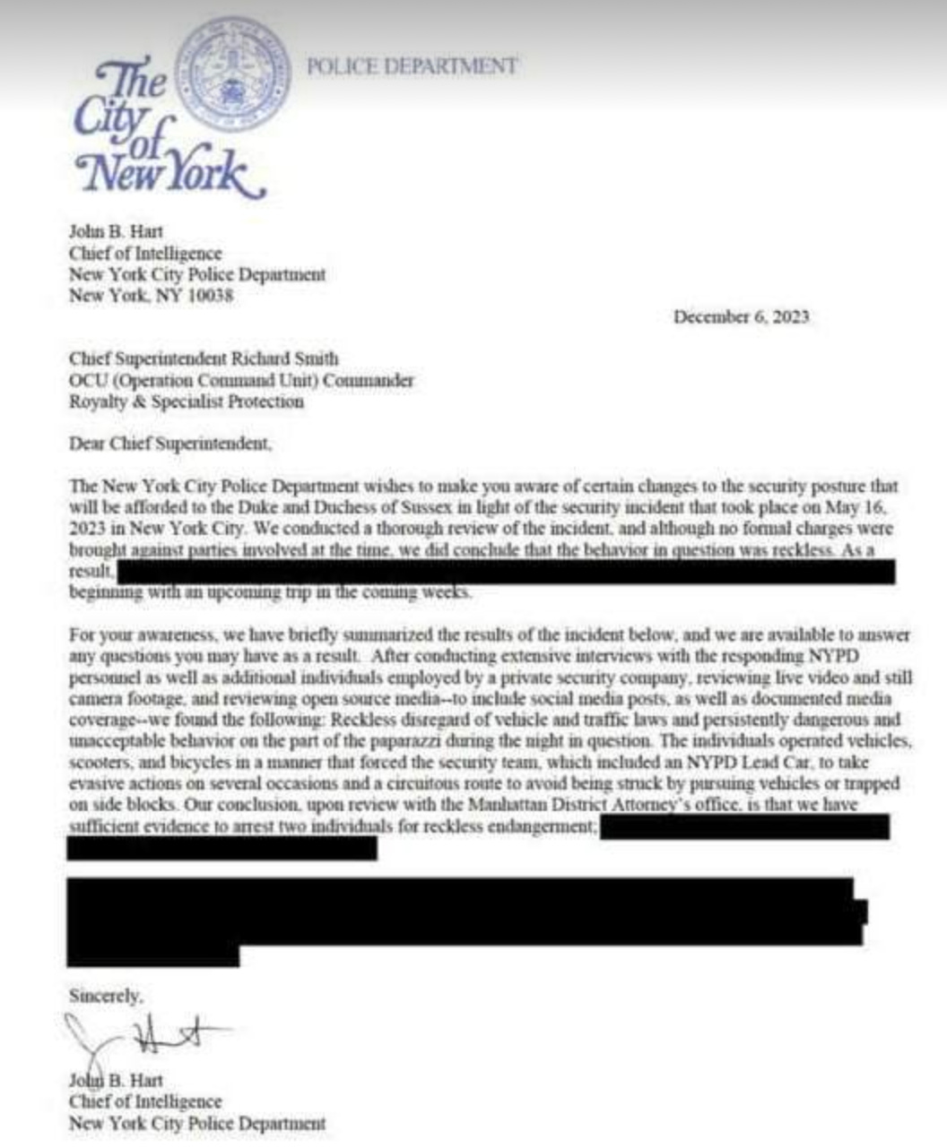 someone sent in a FOIA request about this letter and asked for some answers to specific questions. NYPD said no such letter could be found