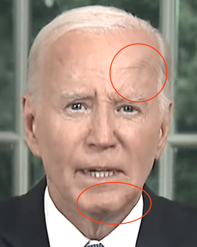 I see it. It appears his lower face/jaw is swollen much like one would see from dental surgery. When Biden spoke, one side of his face was not moving in sync with the other side. I think he had some type of medical issue and fell last week.