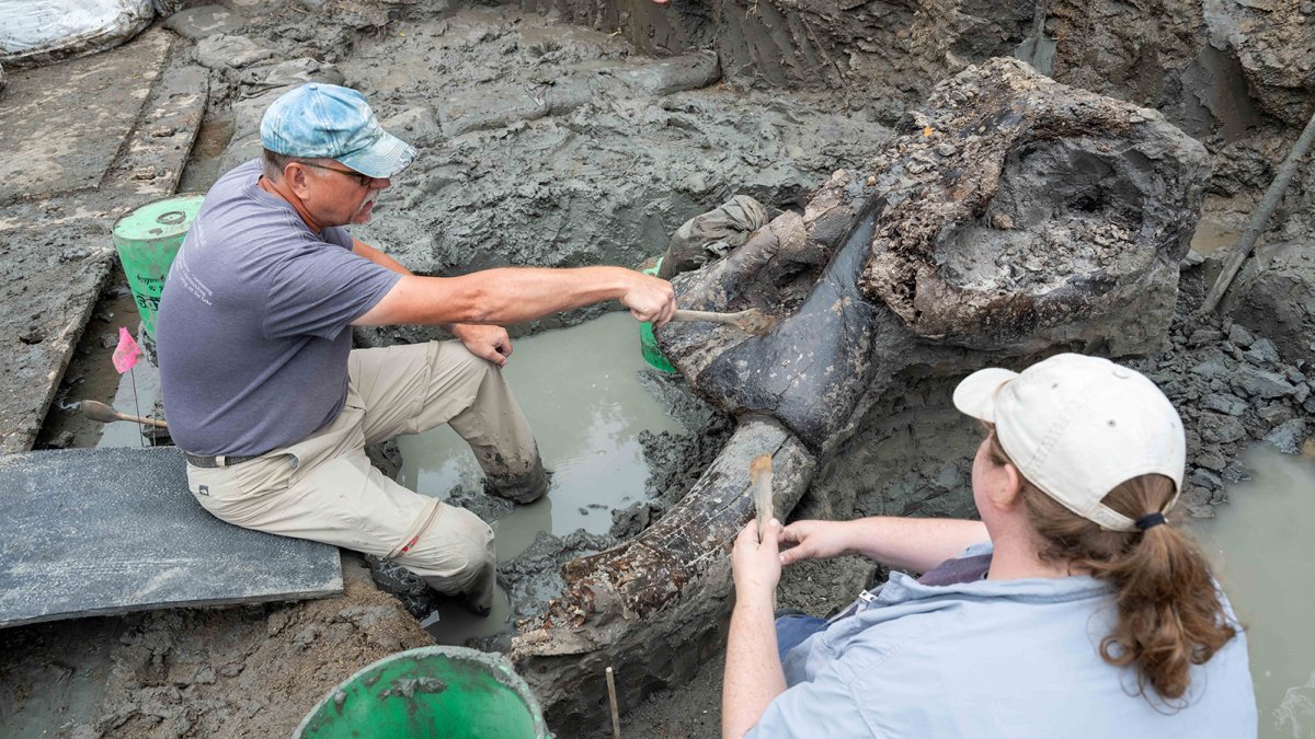 The bone turned out to be a mastodon femur, spurring archaeologists to return last fall and continue their investigation. While there, they also uncovered a broken tusk protruding from the creek bed that they believed was likely still attached to a skull, according to the university. The team was finally able to complete their excavation this month after securing funding.