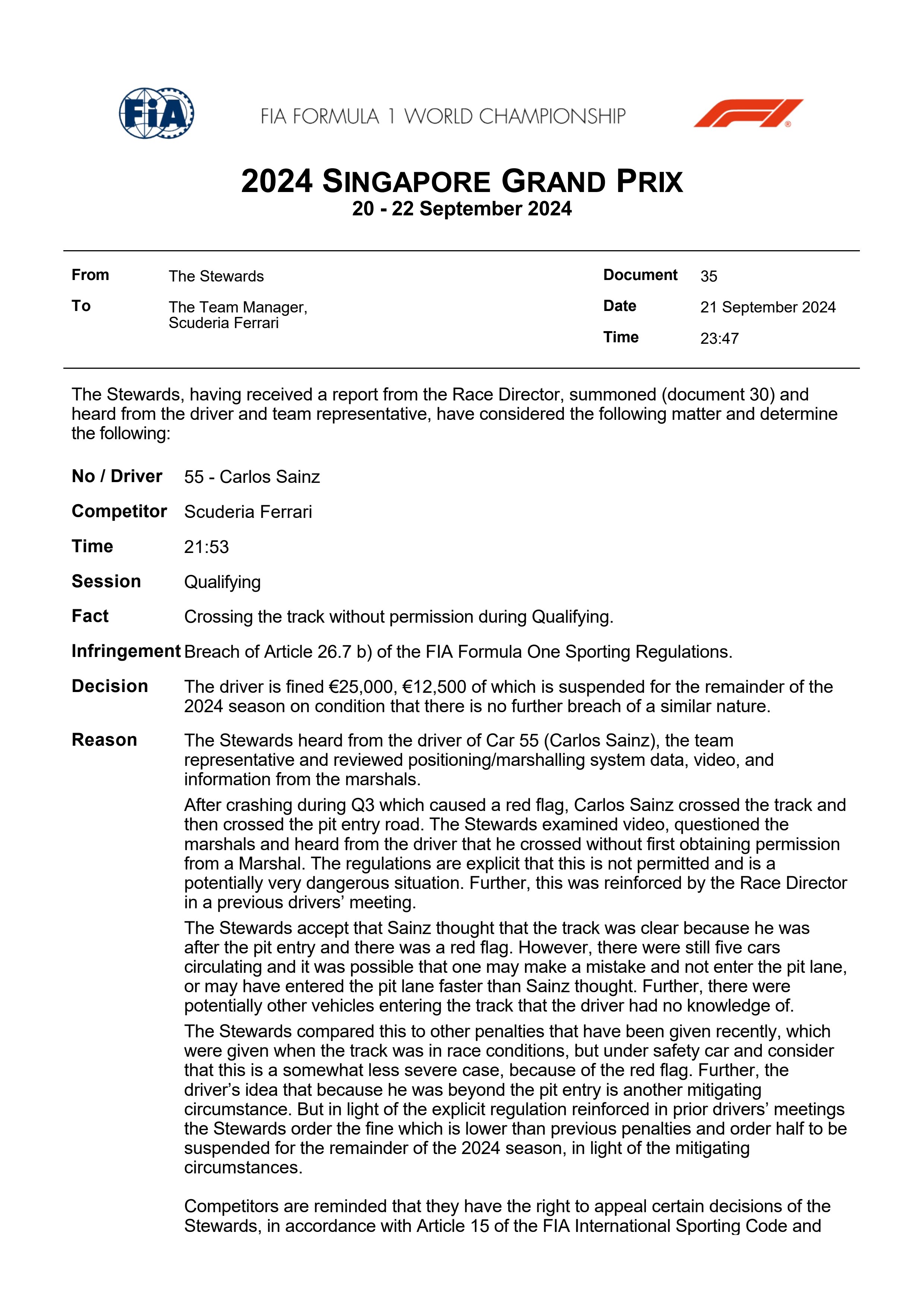 7 | 55 | Carlos SainzSAI | Ferrari | 62 | +96.039s | 6 |