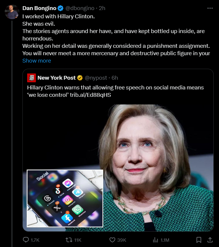 What else did Dan Bongino have to say about her? There’s a Show More at the end of his post.