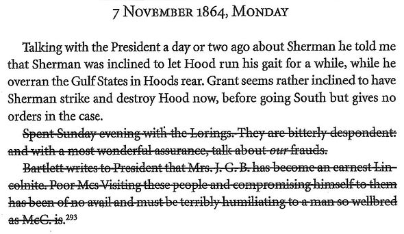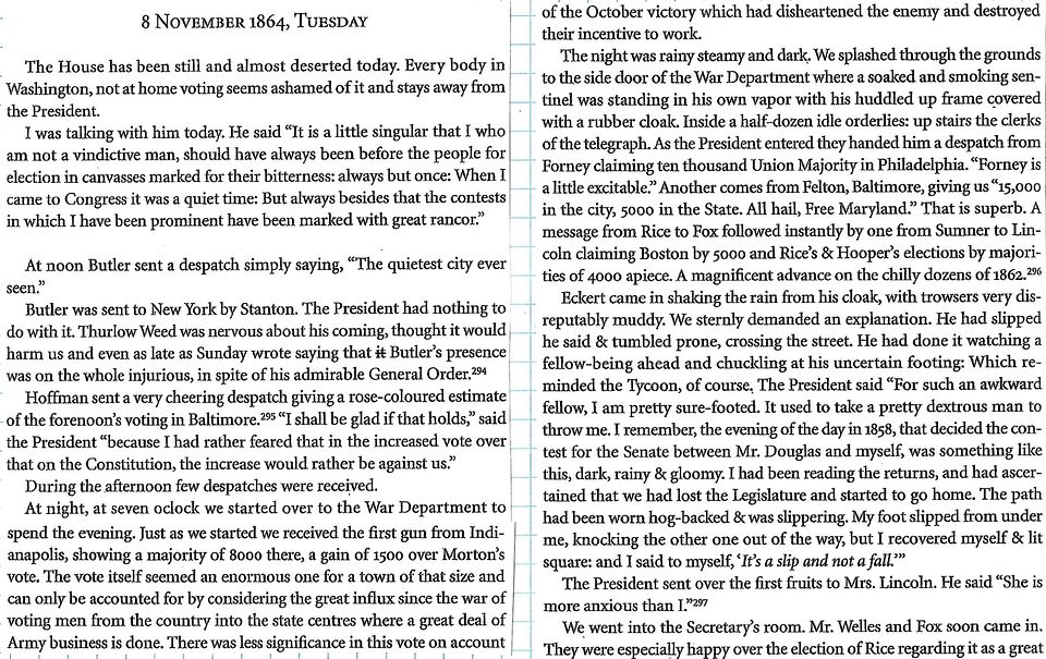 Diary of John Beauchamp Jones: Sunday, November 6, 1864 (“All quiet below. Another day, and if it remains quiet, we may know that Lincoln will be re-elected.”)