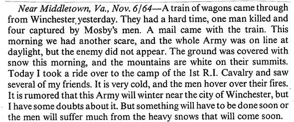 Captain Charles Wright Wills: November 5, 1864 (“I was under the civilizing influence of a white woman’s society to-day for five minutes, and in consequence feel duly amiable.”)