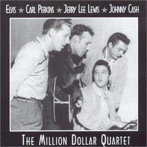 1956 - Elvis Presley, Jerry Lee Lewis, Carl Perkins, and Johnny Cash gather at Sun Studio.