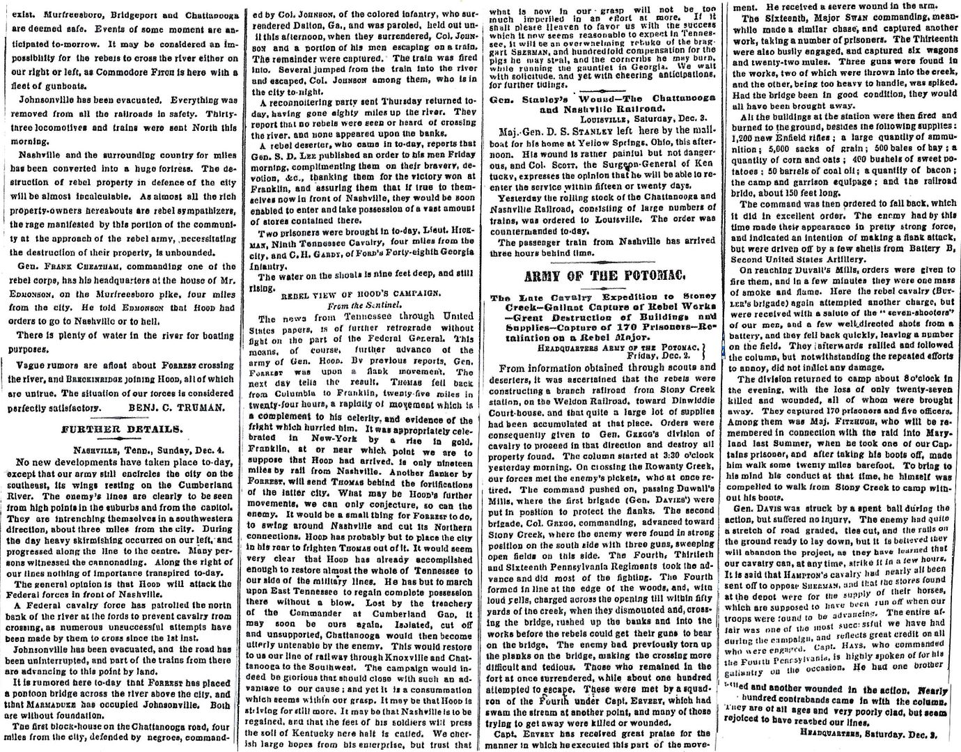 The War in Tennessee: Heavy Skirmishing in Front of Nashville – 3-4