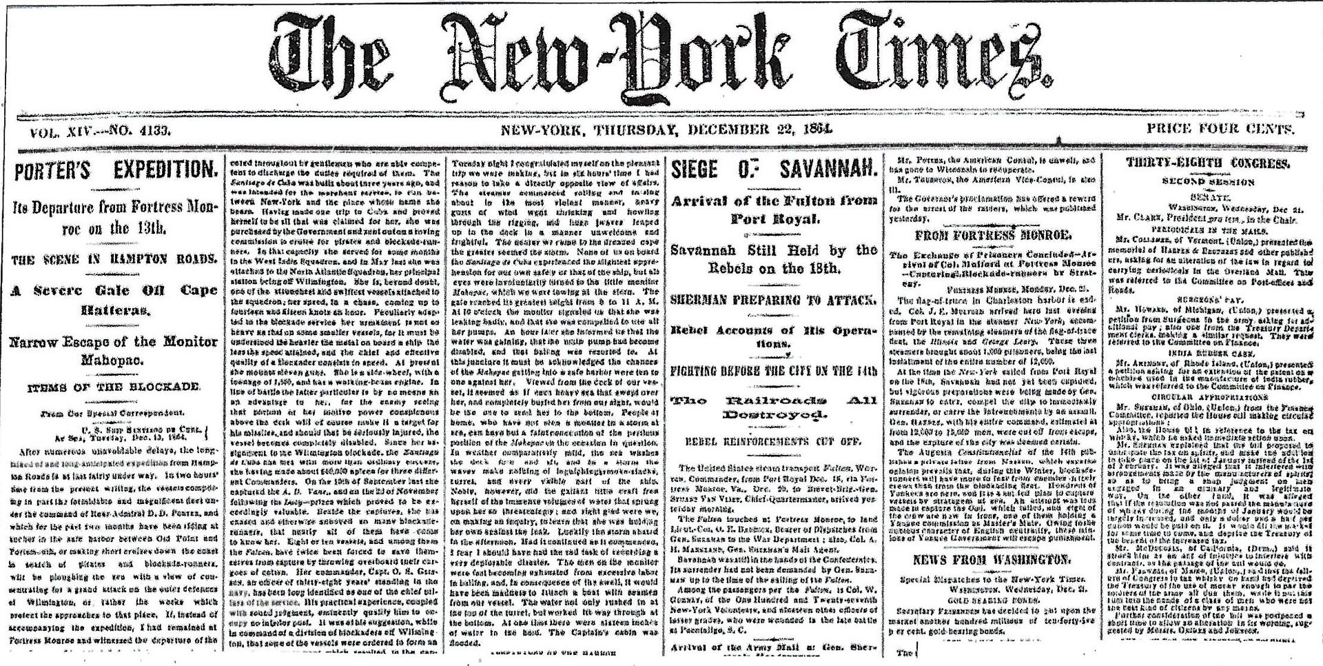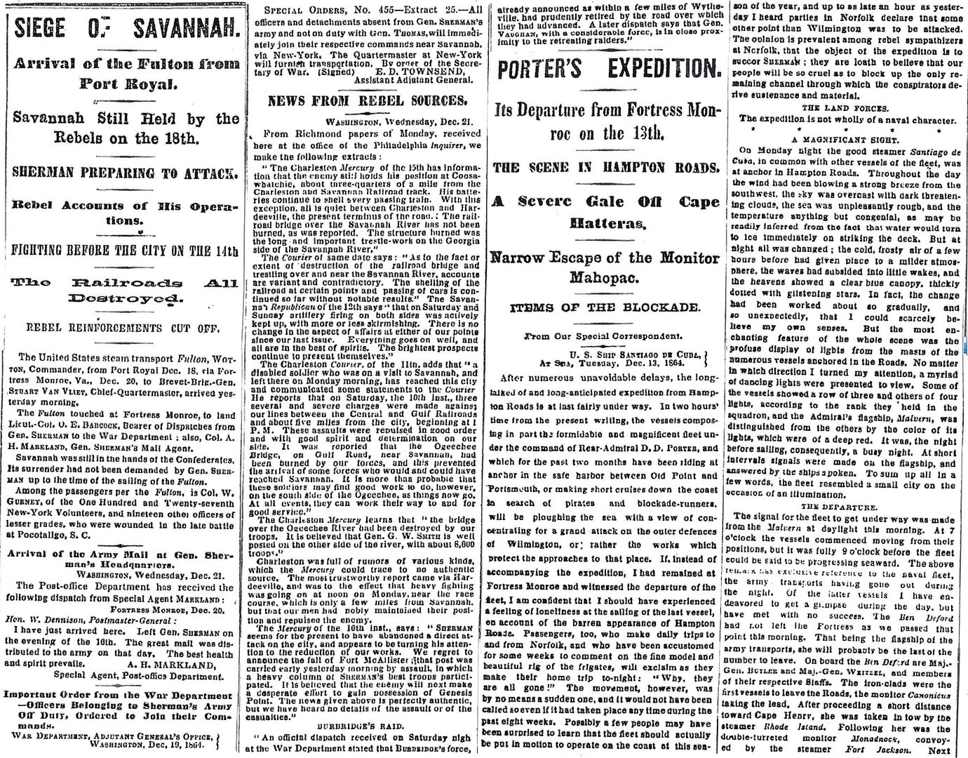 SIEGE OF SAVANNAH: Savannah Still Held by the Rebels on the 18th; SHERMAN PREPARING TO ATTACK (12/22/1864)