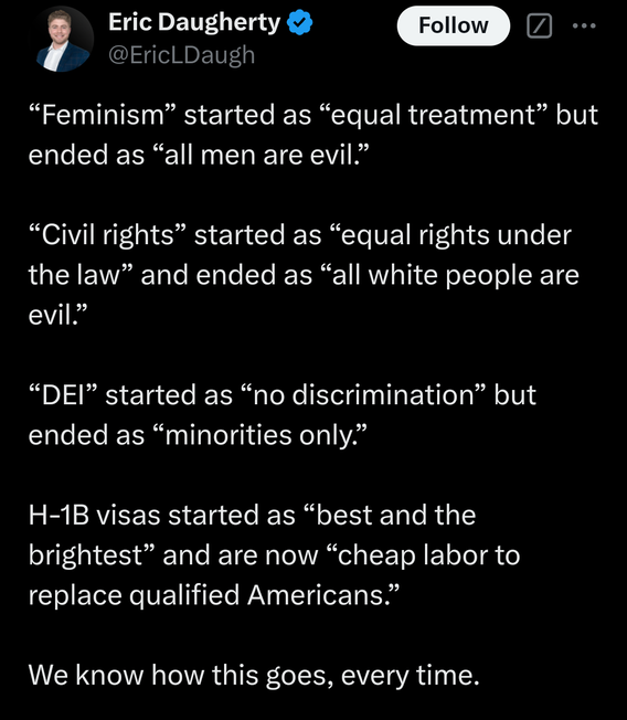 I think this H1B business really has blown up in their faces. They should be making an issue of our education system if they really believe Americans aren’t up to these jobs.