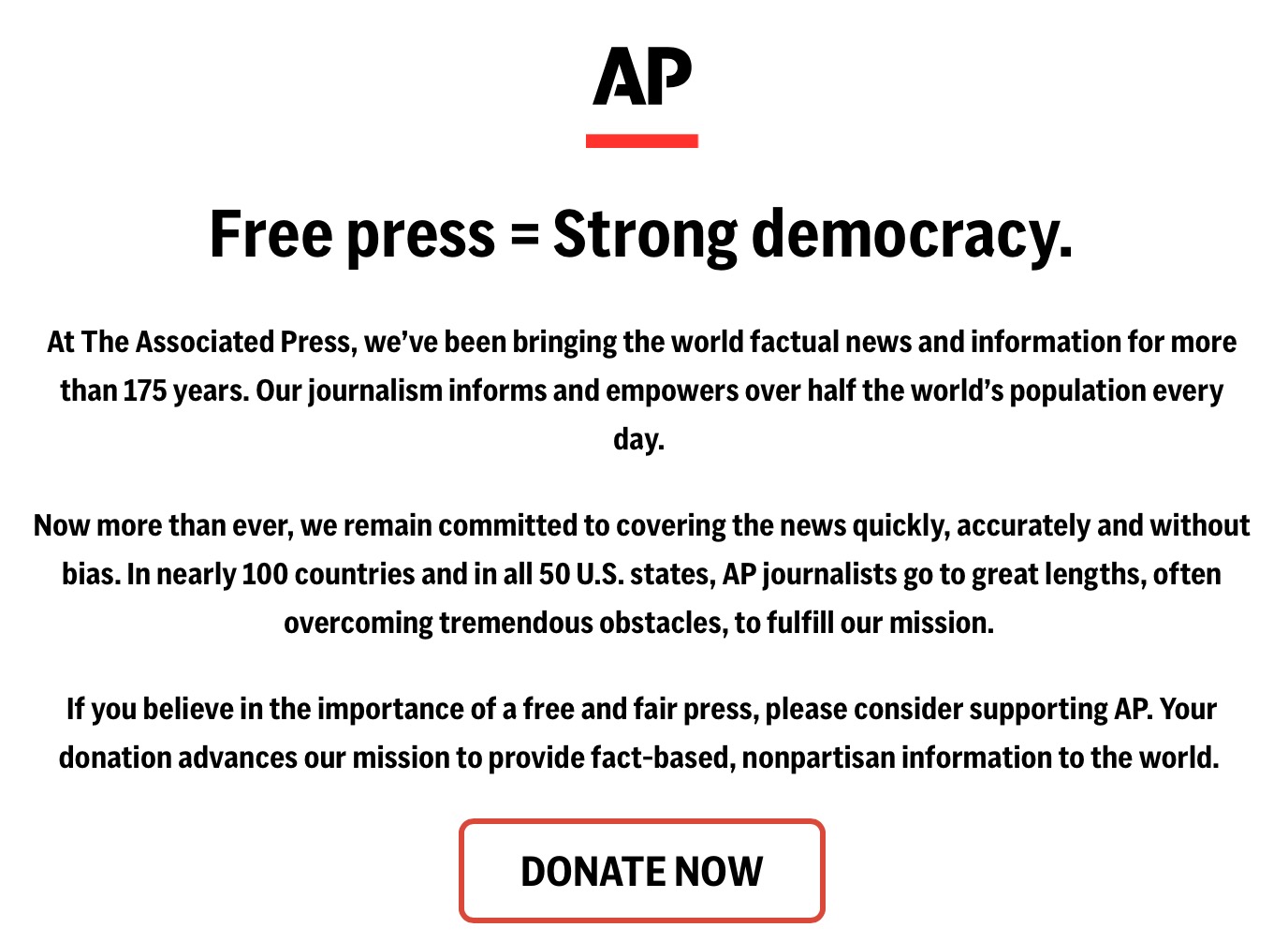 While looking at the AP "Fact Check," this popped up. These people are shamelessly begging for money now, just like NPR and PBS! How pathetic is that?
