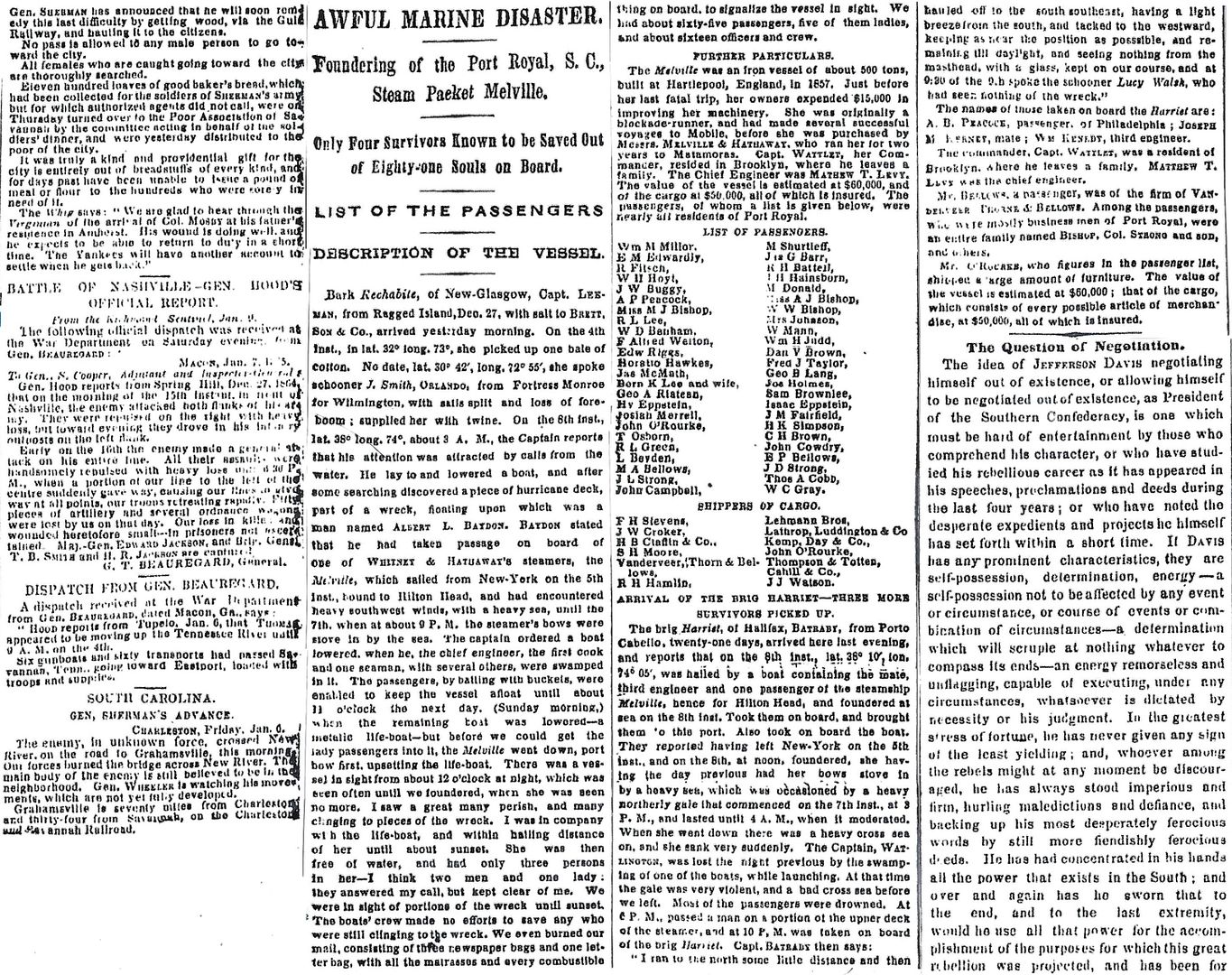 Awful Marine Disaster: Foundering of the Port Royal, S.C., Steam Packet Melville – 5