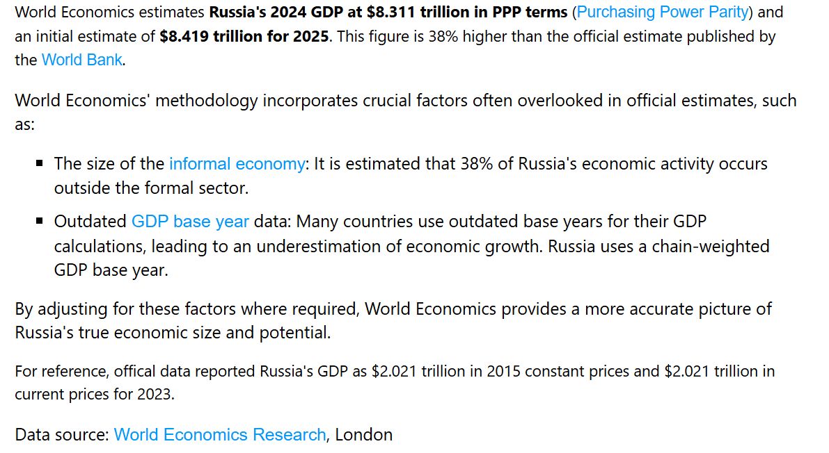 As to Russia's economy, the current IMF forecast is for 1.3 percent real GDP growth in 2025, with an inflation rate of 5.9 percent. This more recent forecast is decidedly less cheery than the dated one in your post.