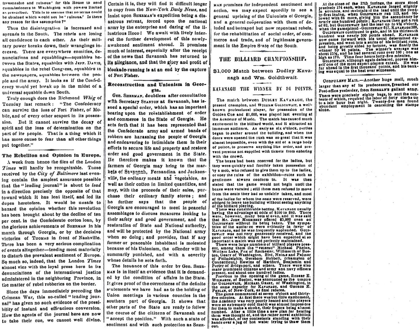 The Billiard Championship: $1,000 Match between Dudley Kavanagh and Wm. Goldthwait – 7