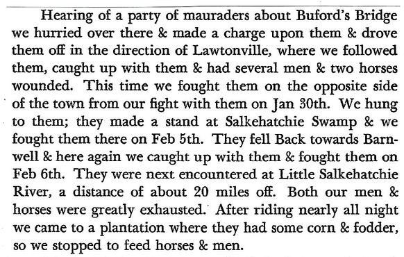 Diary of 1st Lieutenant Daniel L. Ambrose: February 4, 1865 (“In the evening we cross over into the Palmetto State and go into camp three miles from the river”)