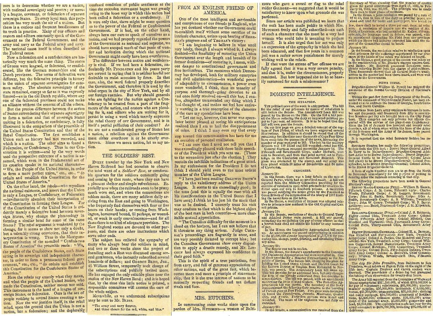 Diary of John Beauchamp Jones: February 5, 1865 (“This fruitless mission, I apprehend, will be fraught with evil, unless the career of Sherman be checked”)