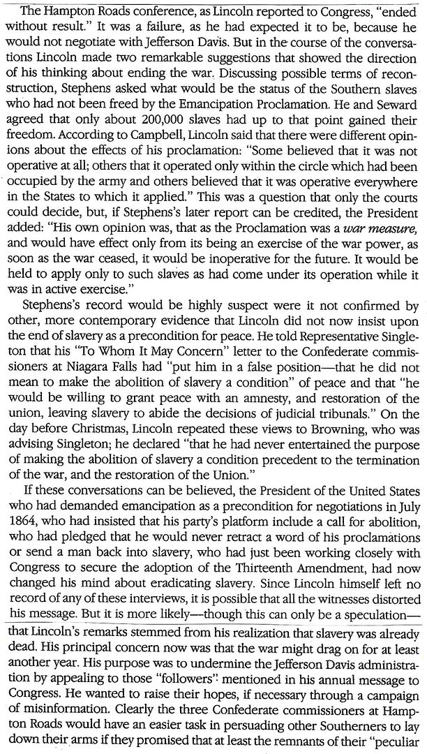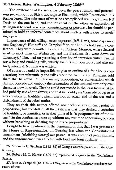 Diary of Gideon Welles: Saturday, February 4, 1865 (“In going the President acted from honest sincerity and without pretension. Perhaps this may have a good effect, and perhaps otherwise.”)