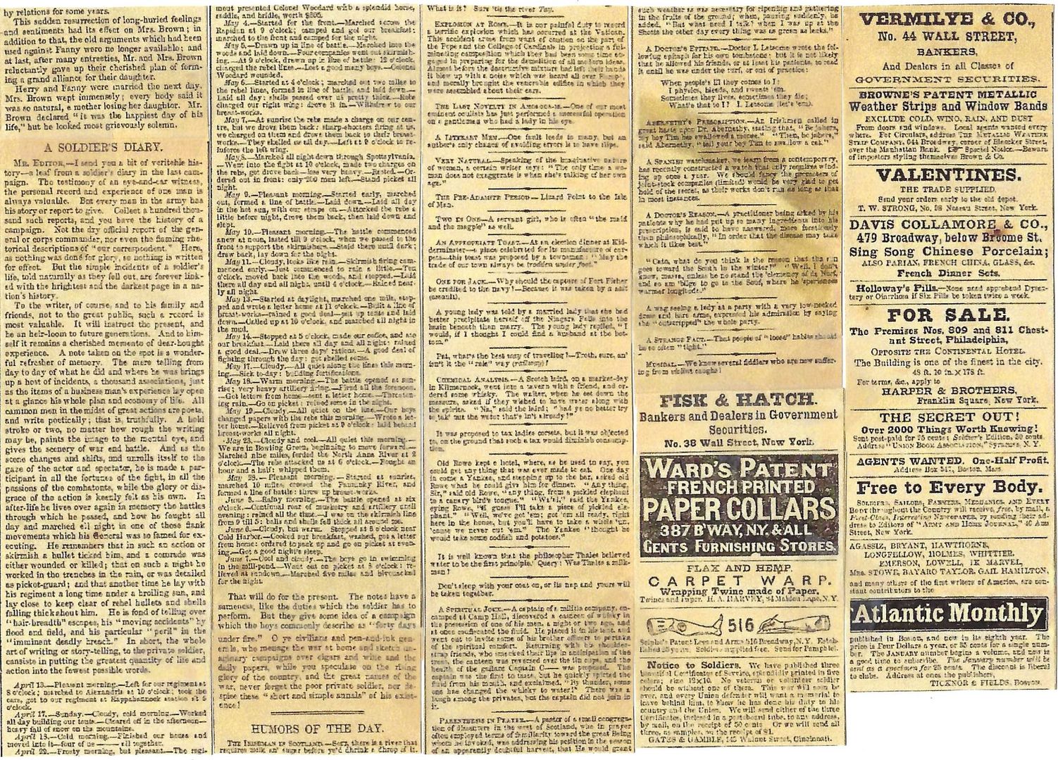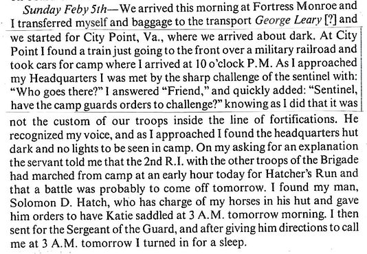 Diary of 5th Sergeant Alexander G. Downing: Saturday, February 4, 1865 (“General Mower’s division lost several men here at the bridge yesterday morning about the time that we were crossing below.”)