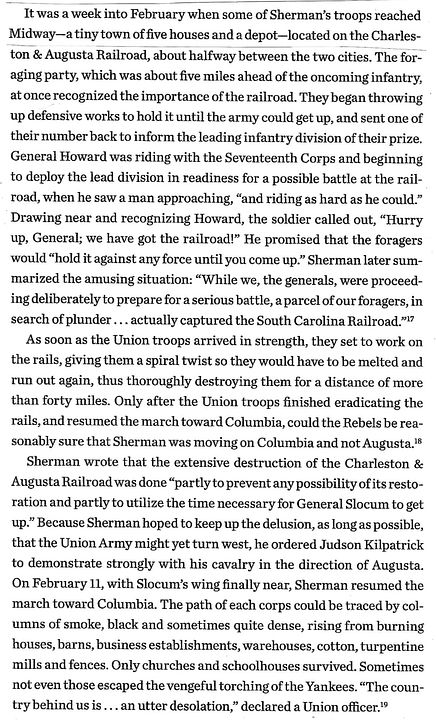 Diary of 5th Sergeant Alexander G. Downing: Tuesday, February 7, 1865 (“We marched out on the Augusta and Charleston railroad to burn the bridge over the Edisto river, but the pickets, on hearing our approach, for it was too dark to see anything, all hastened across the bridge and set fire to it themselves.”)