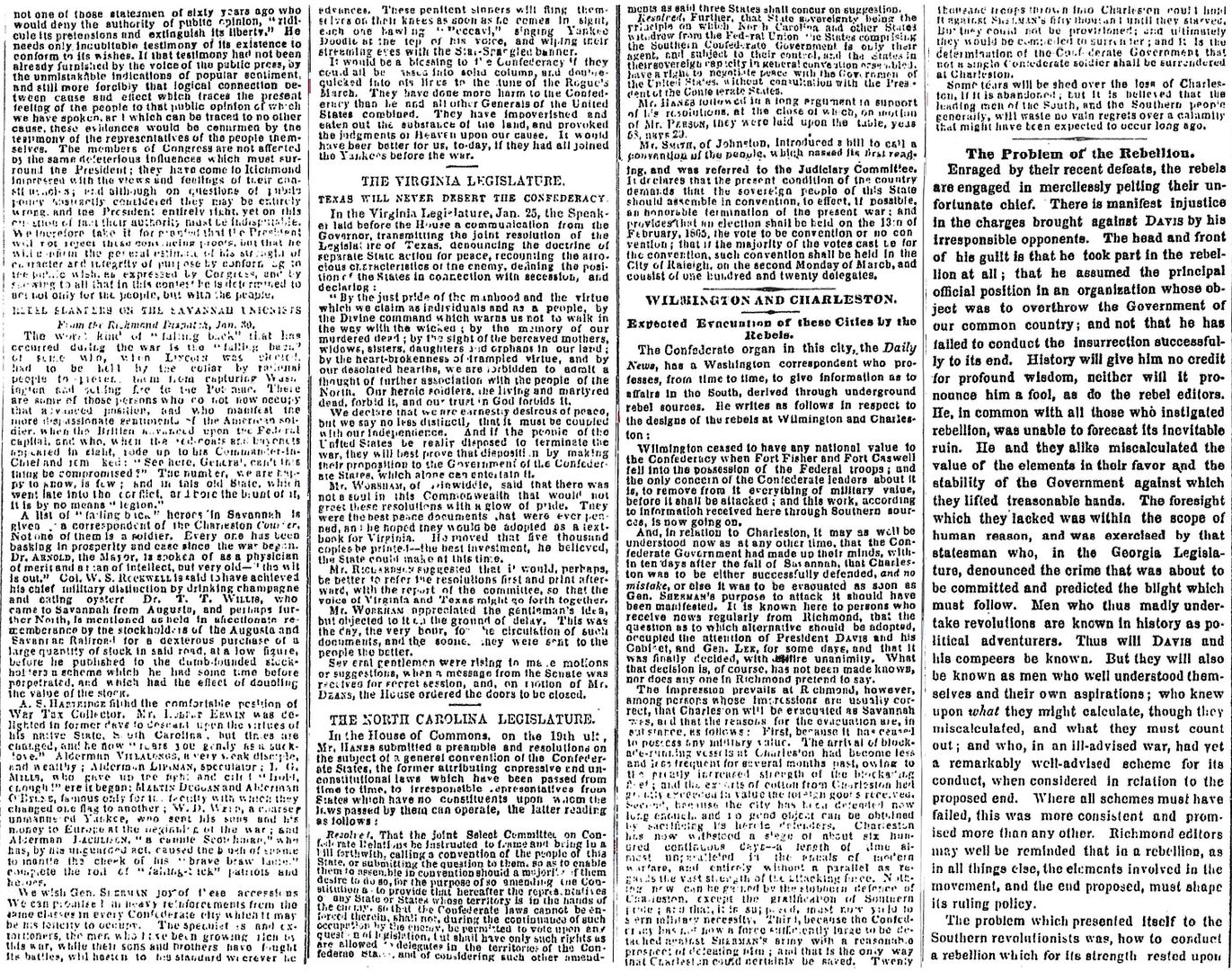 Wilmington and Charleston: Expected Evacuation of these Cities by the Rebels – 7