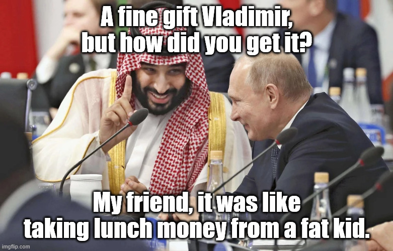 Nice retort, if limp. Old story courtesy of the EXPRESS. I haven't argued about the ring, Kraft or Putin, but only to note the aging of the story. As to Super Bowl rings and such, we don't watch Super Bowls anyway. We're going to an evensong, though.