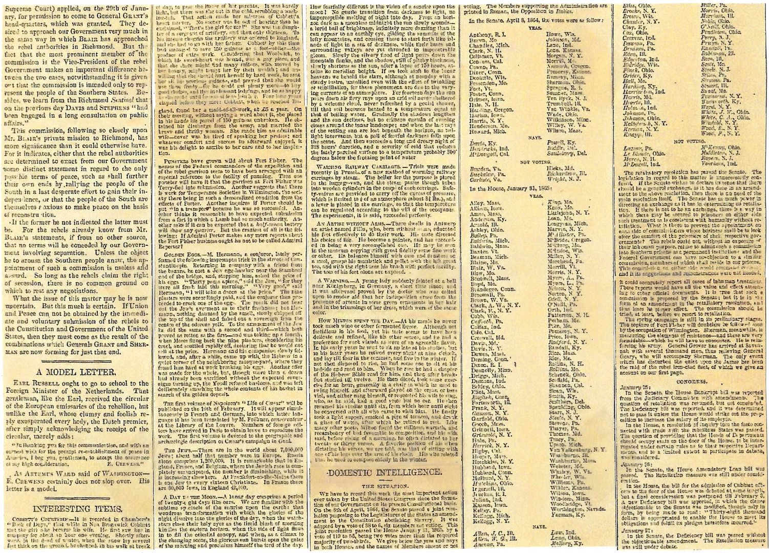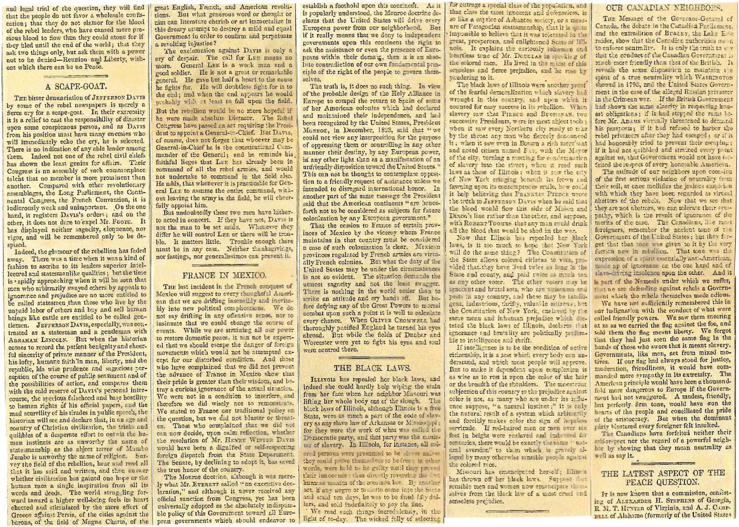 Diary of John Beauchamp Jones: February 15, 1865 (“It is surprising that the Federal authorities do not seem to perceive that in the event of a forced reconstruction of the Union, and a war with any European power, the South would rise again and join the latter.”)