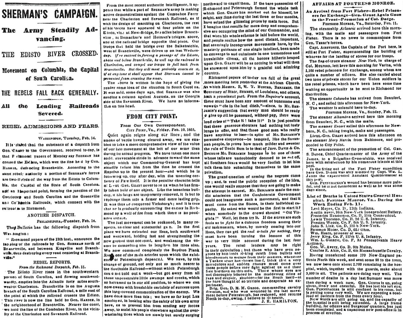 Affairs at Fortress Monroe: An Arrival from Fort Fisher – 2-3