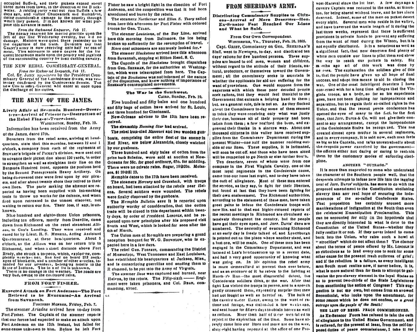 CITY POINT, 4:45 P.M., Feb. 18, 1865.