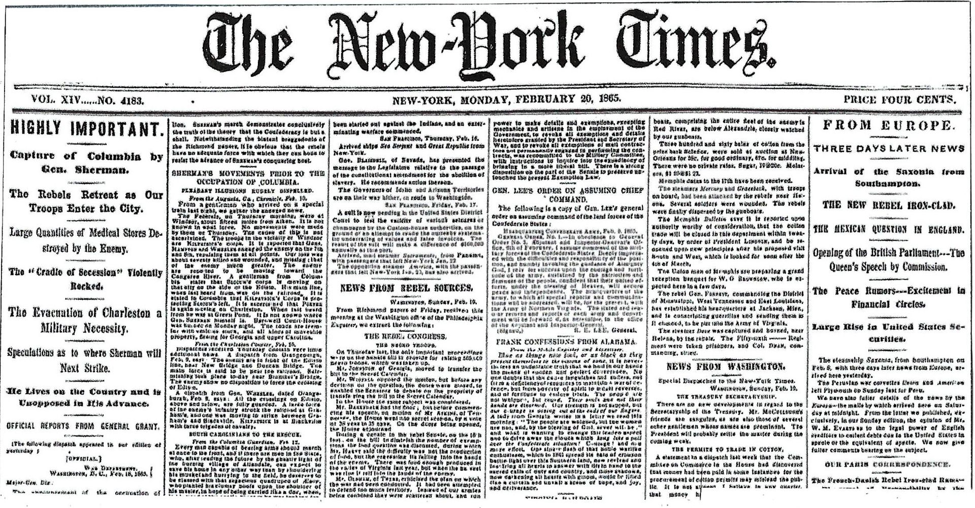 Highly Important: Capture of Columbia by Gen. Sherman – 2-3