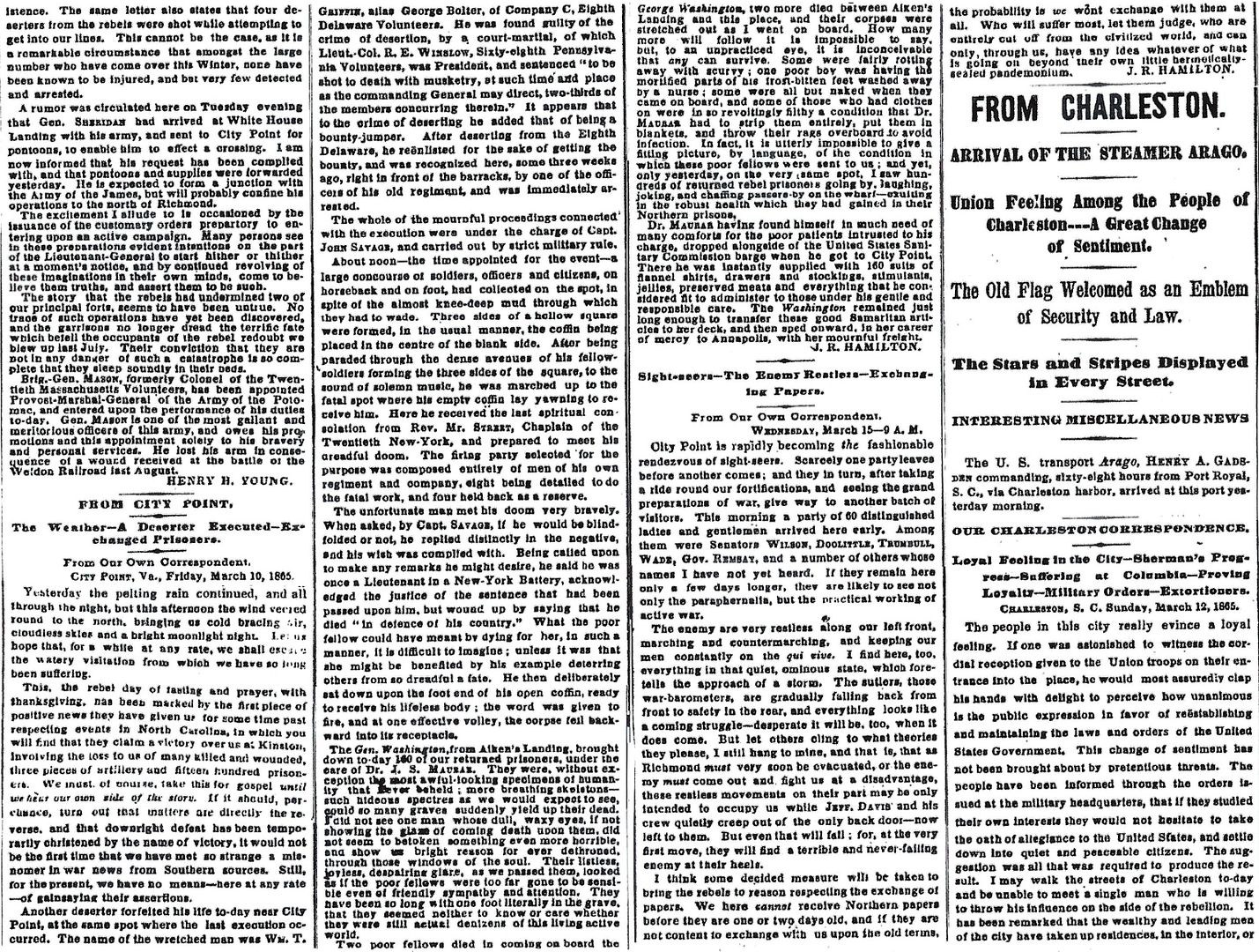 From Charleston: Union Feeling Among the People of Charleston-—A Great Change of Sentiment – 4-6