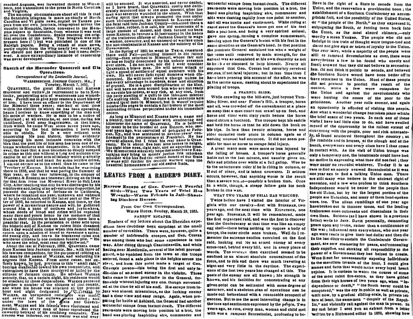 Leaves from a Raider’s Diary: Narrow Escape of Gen. Custer – 6-7